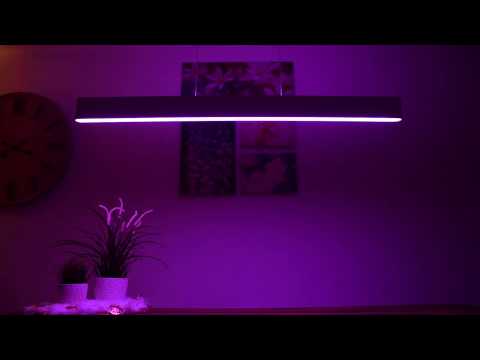 Ensis }}- Die beste Pendelleuchte von Philips Hue im Detail. Die Ensis hat 2 Lightstrips mit insgesamt 6.000 Lumen und kann unabhängig voneinander die Farben ...
